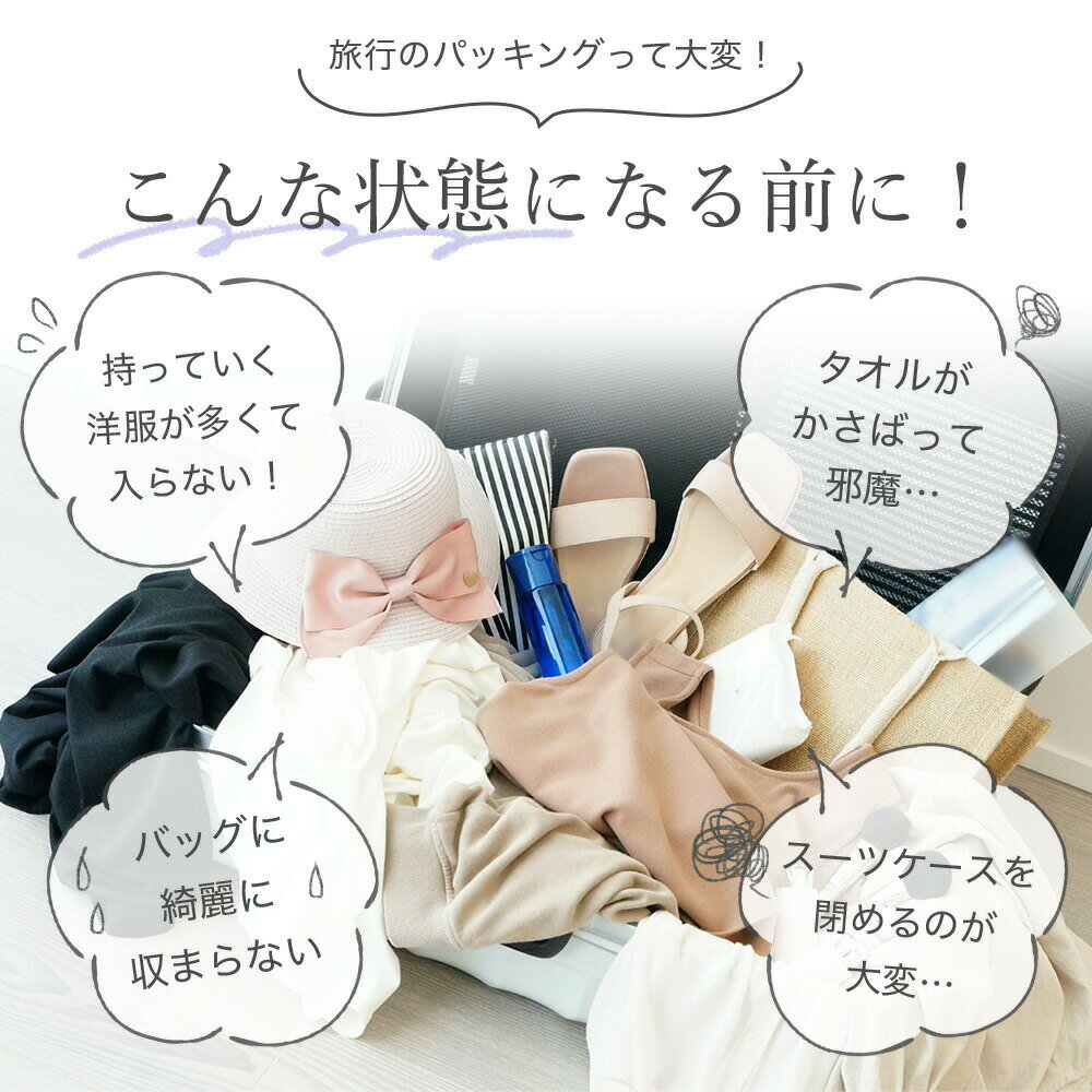 【商品説明】 シンプルで使いやすい!圧縮ポーチが新登場! ファスナーを閉めるだけで簡単に衣類を圧縮。 キレイにパッキングができない、荷物が嵩張って困る… そんなお悩みを解決します! おしゃれでかわいいからパッキングも楽しくなる♪ 【商品詳細】 ・衣類を簡単に圧縮でき、衣類スペースを約50%節約! ・高品質で耐久性があり、通気性も優れた素材。 ・シンプルでおしゃれだから長く使える。 ・お得な2枚組セット ・大容量だからスーツケースや押し入れの整理、おむつポーチにもおすすめ。 ・ファスナー式で使用が簡単 ・湿気やホコリから衣類を守り、水洗いも可能。 【サイズ】 Mサイズ:34×26×10cm Lサイズ:40×28×10cm 【セット内容】 M2個セット / L2個セット 【素材】 ナイロン 【ご注意】 ・ご利用の環境により、色味が実物と異なる場合がございます。 ・ニオイが気になる場合には、開封して風通しのいい場所で陰干しすると解消されます。 ・入荷時期により、仕様が異なる場合がございます。
