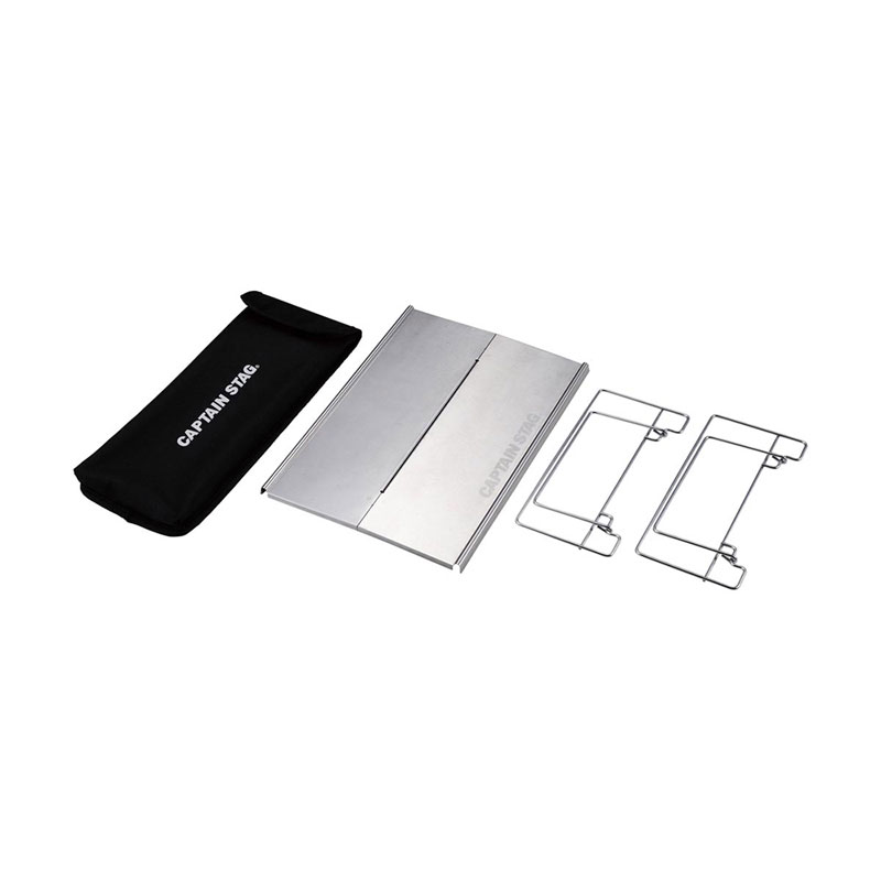 ソロキャンプにちょうどいいコンパクトテーブル。 熱いものを直接置けるので焚き火まわりに最適です。 天板には耐熱性が高いステンレスを採用。 天板から物が落ちにくい転落防止構造。 B6コンロなどの小型グリルを天板上で使用可能。 火にかけた鍋やスキレットが卓上に直接置けます。 持ち運びに便利な収納ケース付。 素材:甲板の表面材/ステンレス鋼、その他の材料/脚部:鉄(クロムめっき) 対象:メンズ・ユニセックス 付属品:収納ケース 生産国:中国製 サイズ:幅295×奥行215×高さ95mm●重量:680g