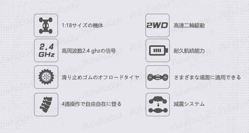 商品名称:1/18 2.4ラジコンカー カラー:グリンー/ブルー 充電方式:usb充電 サイズ:23*14.5*11cm 遠隔制御距離:60 ~ 80メートル 商品包装:カラフルバックス リモコンバッテリー:aa *2(パッケージなし) パッケージサイズ:25.3*16.5*13cm 本体電池:3.7vバッテリーパック 制品構成:車*1、リモコン*1、本体リチウム電池*1、充電器*1、ドライバー*1 商品機能: 1.前進、後退、左、右、左、右、微調整 2.衝撃吸収システムを内蔵して、力を受けて、車の走行をより安定させることができる 3.さまざまな場所に適用して、でこぼこの道/平らな道、砂地の土地がすべて可能 4.ゴムタイヤを采用して、摩擦に抵抗して、厚いタイヤパターン、滑り止めと緩衝効果が優れている ご注意: 該当商品には技適マークが貼付されていなくて 日本国内で使用すると電波法違反になるおそれがあり、予めご了承くださいませ。