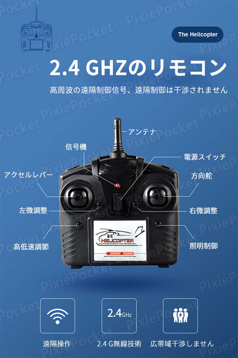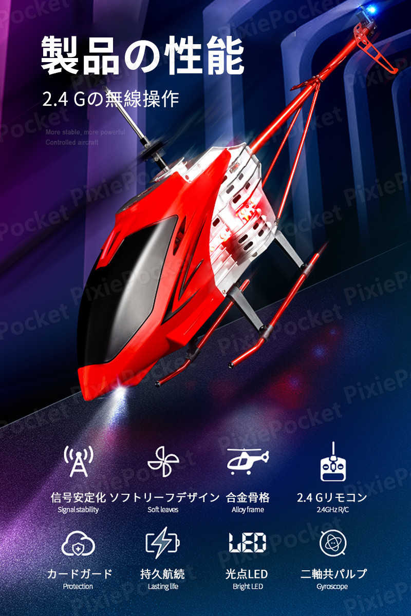 ご注意:遊ぶ時は建物や人の群れから離れて、衝突を避けて広々とした場所を選ぶことをお勧めします。遊んでいないときは、ヘリコプターの電源机のリモコンの電源をオフにして、電力を節約することができます。 製品パラメータ サイズ:本体サイズ:縦90センチ×横30センチ×高さ10センチ リモコンサイズ:縦13.5cm ×横7cm ×高さ17cm 色:赤、黒 飛行机能:左右飛行、ワンタッチ離着陸、夜間飛行灯の点灯 使用バッテリー:本体バッテリー:7.4 v1500mah 2次電池/リモコンバッテリー:単3電池*6(別売) コントロール方式:2.4 ghz無線リモコン制御 遠隔距離:約50m 航続時間:約30分 生産国:中国 ご注意: 該当商品には技適マークが貼付されていなくて 日本国内で使用すると電波法違反になるおそれがあり、予めご了承ください。