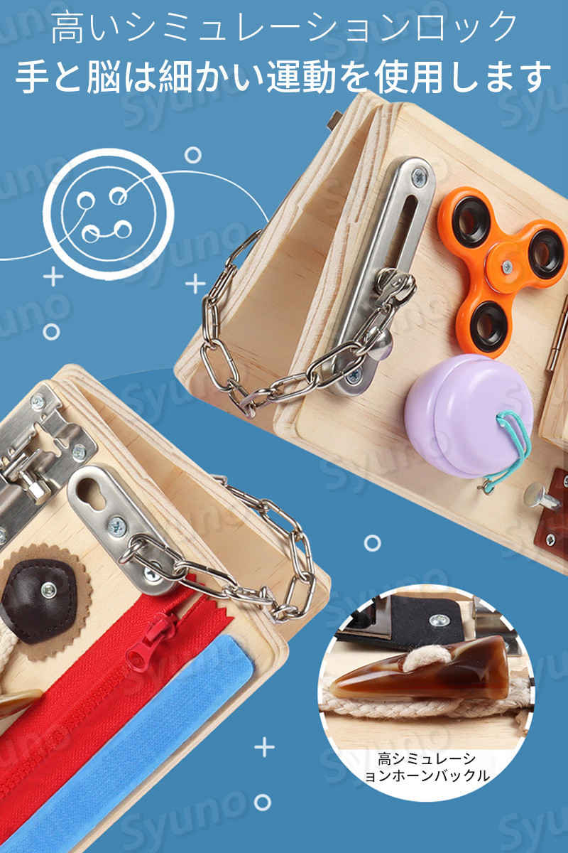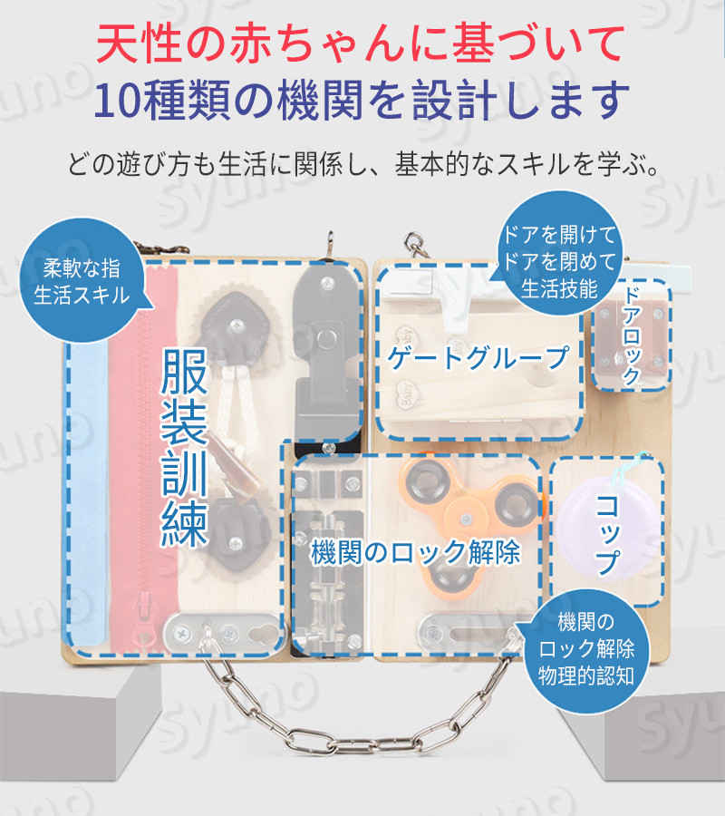 仕様/情報/寸法 品名:折りたたみ多機能生活教育板 適用:18ヶ月+ 材質:木質 能力訓練:生活技能 サイズ:詳細を参照 生産国:中国
