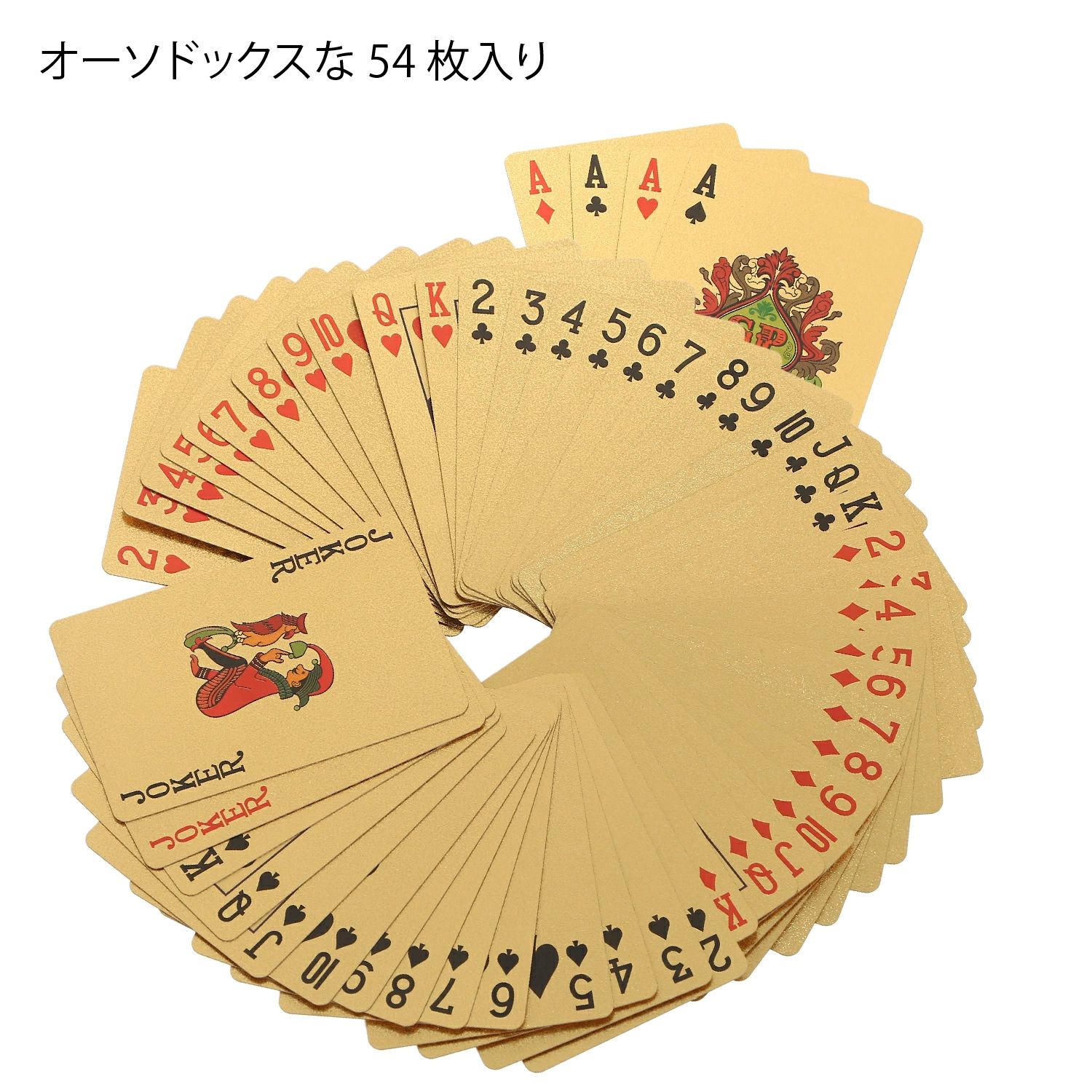 ゴールドトランプ カード 一組 ゲーム に使用すれば、金で ゴージャス 輝きます! プラスチック製 ジョークグッズ や、パーティー、 旅行、 忘年会 、クリスマス、 マジック 、サプライズにも この黄金 gold でリッチ なカードで、七並べ や大富豪、 スピード 、ババ抜きなどなどお楽しみください!!! 2×6×9センチ 125グラム 54枚