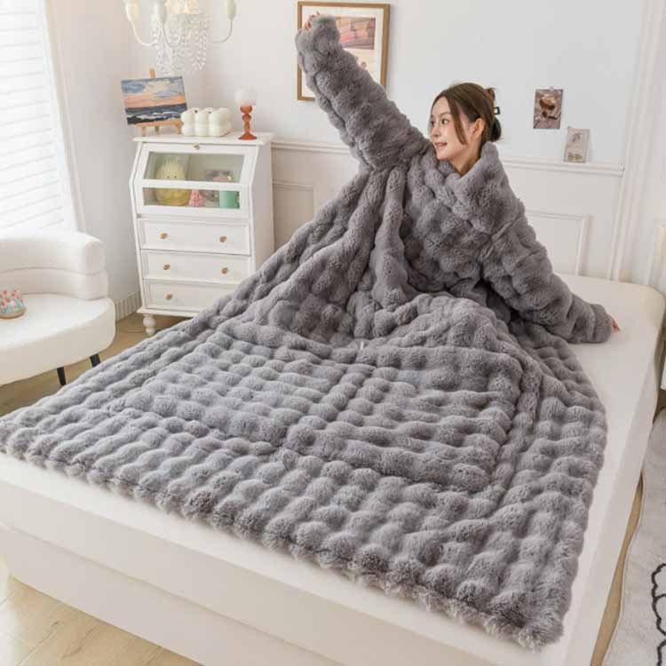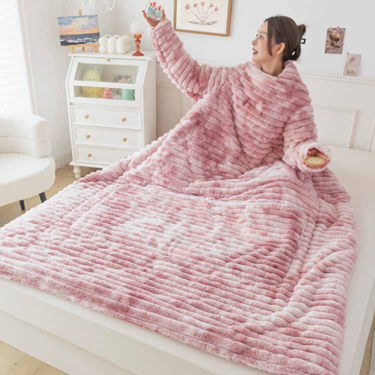 ブランケット 着る毛布 長袖 150×200cm 暖かい 男女兼用 着る毛布 大判 ひざ掛け ラビットファー 着るブランケット もこもこ毛布 全身カバー ルームウェア あったか ふわふわ ひざ掛け お昼寝 かい巻き ポケット付き