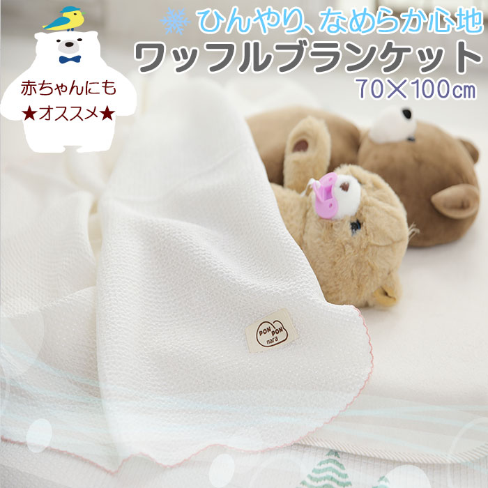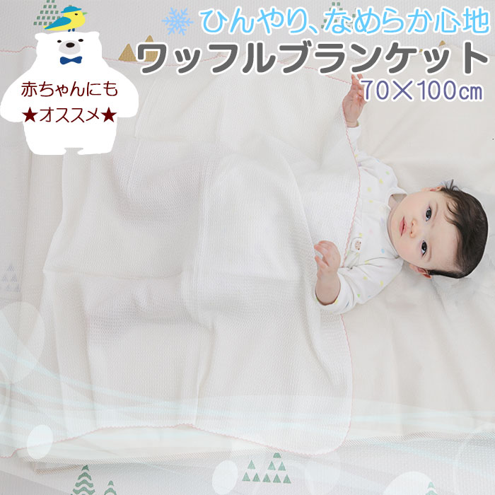 夏掛け 毛布 ワッフルブランケット 70X100cm もうふ 綿 子供用 赤ちゃん 女の子 男の子 キッズ 春 夏 丸洗いOK 寝具 冷え対策 冷感 かわいい プレゼント 誕生日 ひんやり クールブランケット 加重ブランケット ヒンヤリ 冷感接触