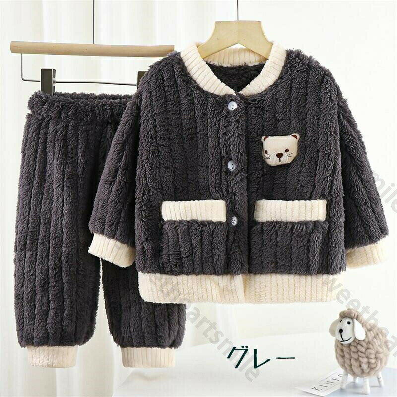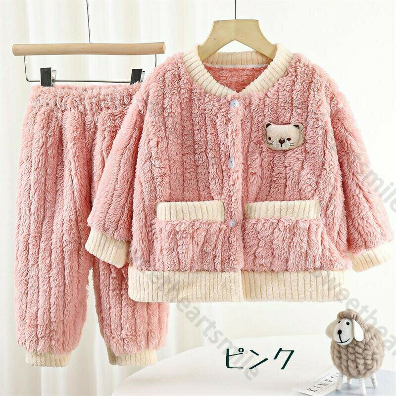 送料無料 キッズ ルームウェア パジャマ 男の子 女の子 長袖 前開き 上下セット セットアップ もこもこ あったか 防寒 部屋着 寝巻き やわらか かわいい おしゃれ 秋冬 90cm-170cm
