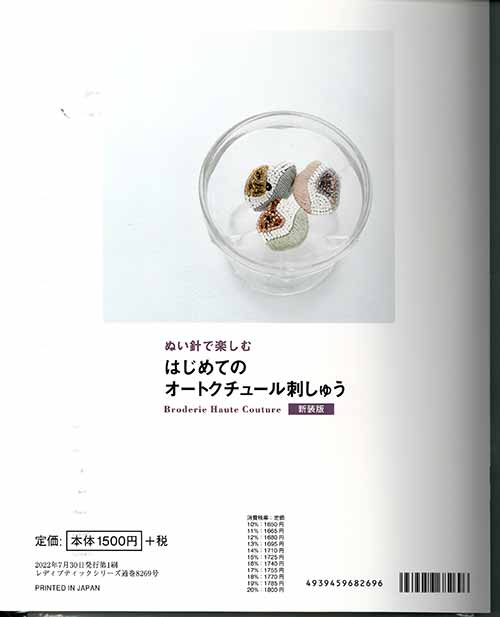 ※カラー選択無 商品情報明細 メーカー ブティック社 商品名 S8269 はじめてのオートクチュール刺しゅう 規格・ページ数 AB判・96ページ 正式名 ぬい針で楽しむ はじめてのオートクチュール刺しゅう 新装版 著者 販売単位 1冊 発売日 2022年06月21日発売 商品紹介 憧れのオートクチュール刺しゅうが楽しめる、レッスンブック。人気作家の煌びやかな作品を掲載。テクニックは写真解説とQR動画で丁寧に解説。すぐに作れる材料キット付き! サイトからのご注意 色番リストに載っていない色番はご注文できません。 メーカー品切れ情報が入り次第、リストからはずしております。 更新作業の特性上、情報が遅れる場合がございます。ご了承下さい。 Webの性質上、パソコンやスマートフォンの設定や環境で実際の商品とカラーが異なる場合がございます。 ※表示価格は1冊 の価格です。お届けの目安 こちらは【取寄商品】の為、お届け迄に最大7営業日程頂いております。色番によっては欠品の場合もございます。 メーカー品切れ情報が入り次第、販売から外しておりますが、更新作業の特性上情報が遅れる場合がございます。7営業日以上かかる場合は別途ご連絡させて頂きますので予めご了承くださいませ。 メーカー希望小売価格はメーカーカタログに基づいて掲載していますS8269 はじめてのオートクチュール刺しゅう
