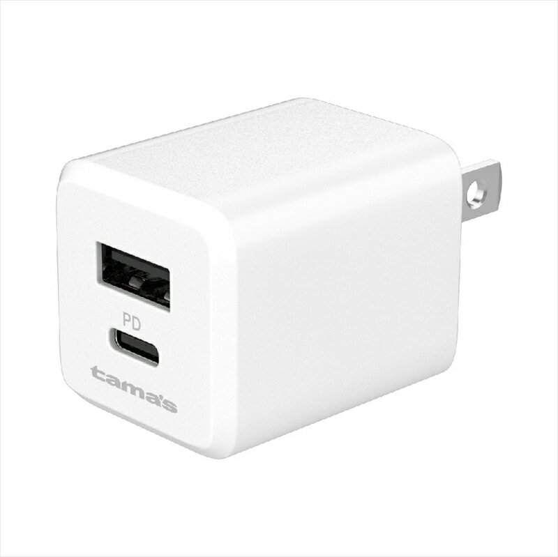 ■商品詳細メーカー:tama's (多摩電子工業)商品:PD20W コンセントチャージャーC+A ホワイト品番:TAP156UCW【商品説明】単体使用時最大20WのUSB PD対応 USB-Cポートと単体使用時最大18WのUSB-Aポートを搭載したAC充電器。過電流・過電圧保護機能を搭載した安全設計。90°回転式ACプラグ採用で収納・持ち運びに便利。海外でも使用できるAC100V〜240V対応。※国や地域によって市販の変換プラグが必要になる場合があります。【製品仕様】・サイズ : 約W30×H30×D38.5mm(ACプラグ含まず)・質量 : 約40g・ポート : USB-C(Power Delivery)×1、USB-A×1・入力 : AC100V〜240V 50/60Hz 0.5A max・出力 :[USB-C]単体使用時最大20W DC5V 3A、9V 2.22A 12V 1.67A [USB-A]単体使用時最大18W DC5V 3A、9V 2A 12V 1.5A [2ポート使用時]合計最大DC5V 3A・材質 : (本体ケース)PC、(ACプラグ)銅合金+ニッケルめっき※仕様および外観は、性能改良のため予告なく変更することがあります。■納期について・商品はメーカーさんより、お取り寄せ販売となります。・お手配後、入荷までに約4〜7日(土・日・祝日・その他メーカー休業日除く)ほどお時間を要します。・メーカー欠品、生産中止等で入荷に見込みがございません場合は キャンセルとさせていただく場合がございます。予めご了承ください。■ご注意・メーカーの共通画像を使用しております。・ご返品、キャンセルはお受けできませんので 適合等よくご確認の上、ご注文をお願いいたします。・予告なく仕様が変更となる場合がございます。