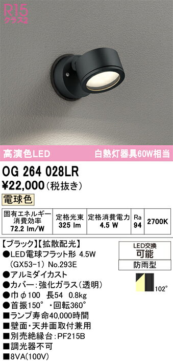 オーデリック アウトドアスポットライト OG264028LR 工事必要