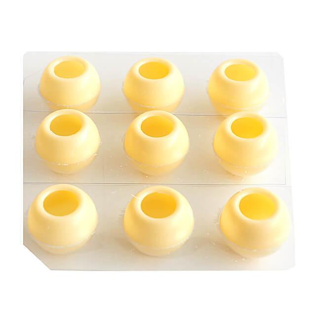 ガナッシュを流しこんで固めれば簡単にチョコレートトリュフが作れます。 ベーシックなトリュフやボンボンショコラの他、ロリポップタイプのチョコにもお使いいただけます。 サイズ: 直径26mm ■名称:チョコレート ■原材料名:チョコレート(砂糖、ココアバター、全粉乳、植物油脂)(国内製造)/乳化剤、香料、(一部に乳成分・大豆を含む) ※本品加工工場では小麦・卵・そば・落花生・オレンジ・くるみ・ごま・バナナ・マカダミアナッツ・もも・りんご・ゼラチン・カシューナッツ・アーモンドを含む製品を加工しています。 ■内容量:9個入 ■賞味期限:商品パッケージに記載 ■保存方法:直射日光、高温多湿を避け冷暗所で保存してください。 ■加工者:株式会社プロフーズ(岡山市中区平井1162-1) ■栄養成分表示(100g当たり)推定値 熱量:587kcal たんぱく質:5.5g 脂質:39.0g 炭水化物:53.5 g 食塩相当量:0.2g ■配送形態:夏季冷蔵 ※常温便・冷蔵便・冷凍便、複数ご注文の場合、品質上問題のないものは、冷蔵便、冷凍便の商品を優先に同一梱包にさせて頂きます。 ※品質保持のため、夏季期間(4月〜10月頃、おおよその気温が20℃前後)は冷蔵便で発送します。なお、気候条件等により温度帯の変更時期が変わることがございますので、予めご了承ください。 ■使用上の注意 ※賞味期限に関わらず開封後はお早めにご使用ください。 ※保存状態によってブルーミングを起こし、表面が白くなる場合がございます。 ■その他の情報 ※季節商品のため、在庫がなくなり次第、販売終了します。 ※商品パッケージや仕様は予告なく変更になる場合がございます。食品表示情報につきましては、お手元に届きました商品の食品表示を必ずご確認いただきますようお願いします。■関連商品 ホールクーゲルミルク 9個入 ホールクーゲルスイート 9個入