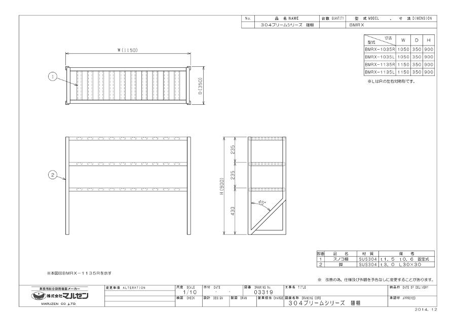 マルゼン 麺棚 BMRX-1135R ブリームシリーズ SUS304