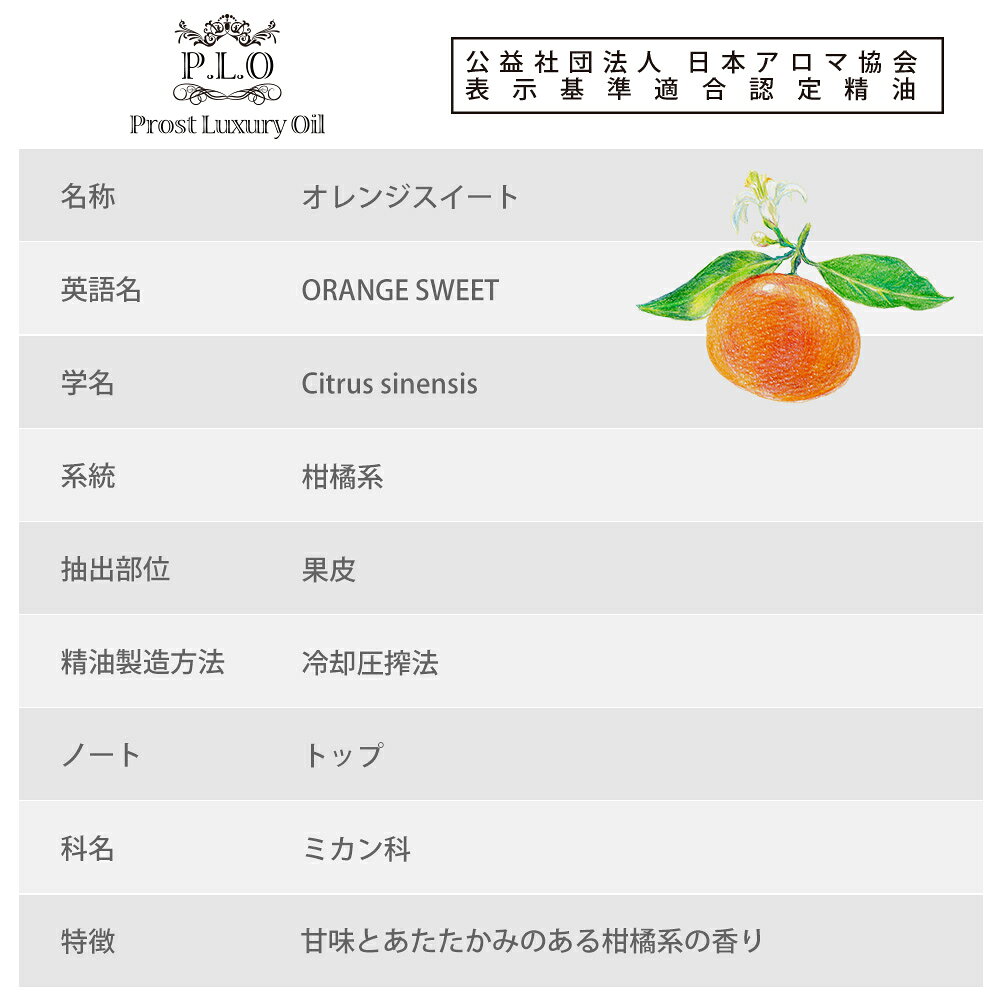 オーガニック Prost Luxury Oil オレンジスイート 有機 10ml エッセンシャルオイル アロマオイル 精油