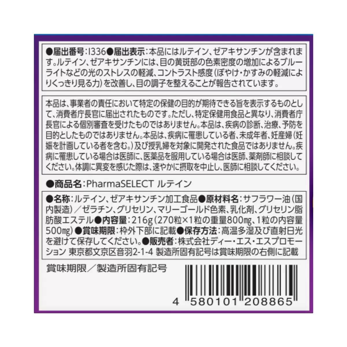 ルテイン サプリ ゼアキサンチン 270粒(90日分)x3個 ファーマセレクト コストコ 通販 送料無料