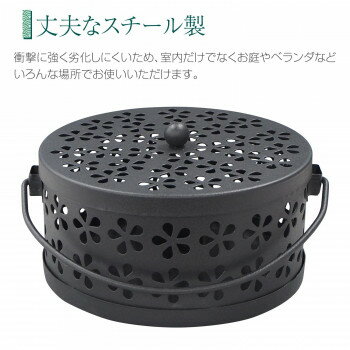 「北海道・沖縄・離島・一部地域へのお届けは別途送料を請求させていただきます。」「お客様都合でのキャンセルの場合、出荷前後にかかわらずキャンセル料などの手数料が発生いたしますので予めご了承ください。」「メーカーより取り寄せ商品のため、在庫状況によっては欠品・廃盤の可能性があります。あらかじめご了承ください。」スチール製の丈夫な蚊取り線香ホルダー。表面は黒のマット調で高級感があり、おしゃれな桜の抜きデザインでどんなお部屋にもなじみます。庭やベランダなどアウトドアでの活躍はもちろん、ノスタルジックな雰囲気が室内のインテリアとしてもお使いいただけます。サイズ15.3cm×15.3cm×10.6cm個装サイズ:16.5×16.5×11.5cm重量404.0g個装重量:484g素材・材質スチール生産国中国fk094igrjs