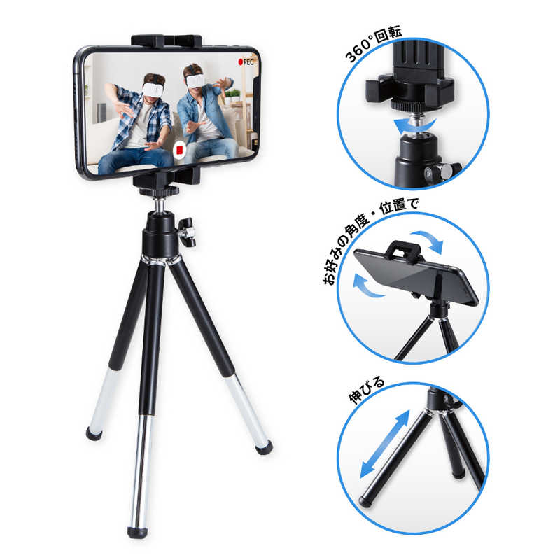 エレコム ELECOM スマートフォン用 コンパクト三脚 2段伸縮タイプ P-STALBK ブラック