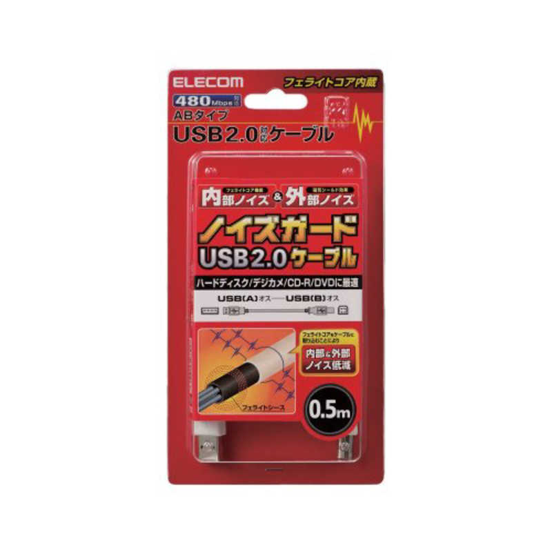 エレコム ELECOM 0.5m USB2.0ケーブル「A」⇔「B」 「フェライトコア内蔵タイプ」(ホワイト) USB2-FS05