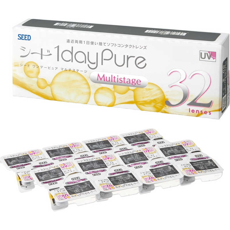 【商品解説】遠くも近くも見える贅沢「シード ワンデーピュア マルチステージ」は、自然な見え方を追求して設計された遠近両用1日使い捨てソフトコンタクトレンズ。通常レンズからのスムーズな移行が可能なので、初めて遠近両用コンタクトレンズを使う方にもおすすめです。遠くも近くも1枚のレンズで見られますレンズには遠くと近くのそれぞれの度数が配置されているので、1枚のレンズで遠近どちらも見ることができます。見え方のバランスを配慮した設計により、心地よい自然な見え方を実現します。うるおいキープで乾きにくい水分を引き寄せてとどめる力が強い両性イオン素材“SIB”に加えて、保存液にはアルギン酸と非イオン界面活性剤の2種類のうるおい成分を配合。レンズ表面の水分をしっかり保持しますので、夕方の乾燥感が気になる方に特におすすめです。・瞳を守るUVカット付き・お得な1箱32枚入り・表裏がわかりやすいレンズマーク入り・お手入れ不要で毎日清潔医療機器承認番号:22100BZX00759000広告文責:株式会社コジマ 0120-39-0007メーカー:SEED商品区分:高度医療機器高度管理医療機器販売許可:船保第0406号【スペック】●型式:(1Dピュアマルチ/+0.75)●JANコード:4961243210778BC(ベースカーブ):8.8PWR(パワー):-5.00ADD(加入度数):+0.75DIA(サイズ):14.2mm含水率(%):58酸素透過係数(Dk値):30酸素透過率(Dk/L値):42.9ソフトコンタクトレンズ分類:グループIV包装:32枚入医療機器承認番号:22100BZX00759000タイプ:1日遠近両用タイプ【注意事項・特記事項】商品ごとにベースカーブ(BC)、度数(PWR、+/-)等が異なります。ご確認のうえご注文下さい。※こちらの商品をご購入の前には眼科受診の上、処方箋(指示書)記載内容・医師の装用指示に基づいてご注文・ご使用ください。また、使用中は眼科医の定期的な診察をおすすめしています。【返品について】■お客様のご都合による返品は、商品到着後8日以内に限らせていただきます。事前に必ず弊社サポートセンターまでご連絡をお願いします。■開封品、箱が潰れた商品、ペンやシール等で印を付けた商品(シュリンク・外装も含む)の返品はお受けできません。■複数箱ご購入での割引発生時や○箱セット等の割引商品は、1箱でも上記に該当しますと未開封であっても返品はお受けできません。【交換について】■未開封品であっても、度数交換等は承っておりません。予めご了承ください。※不具合や製品に関するお問い合わせはメーカーサポートセンターまでご確認ください。広告文責:株式会社コジマ 0120-39-0007商品区分:高度管理医療機器高度管理医療機器販売許可:船保第0406号この商品は宅配便でお届けする商品です出荷可能日から最短日時でお届けします。※出荷完了次第メールをお送りします。配送サービス提供エリアを調べることができます「エリア検索」をクリックして、表示された画面にお届け先の郵便番号7桁を入力してください。ご購入可能エリア検索お買い上げ合計3,980円以上で送料無料となります。※3,980円未満の場合は、一律550円(税込)となります。●出荷可能日から最短日時でお届けします。(日時指定は出来ません。) ※お届け時に不在だった場合は、「ご不在連絡票」が投函されます。 「ご不在連絡票」に記載された宅配業者の連絡先へ、再配達のご依頼をお願いいたします。●お届けは玄関先までとなります。●宅配便でお届けする商品をご購入の場合、不用品リサイクル回収はお受けしておりません。●全て揃い次第の出荷となりますので、2種類以上、または2個以上でのご注文の場合、出荷が遅れる場合があります。詳細はこちら■商品のお届けについて商品の到着日については、出荷完了メール内のリンク(宅配業者お荷物お問い合わせサービス)にてご確認ください。詳しいお届け目安を確認する1度の注文で複数の配送先にお届けすることは出来ません。※注文時に「複数の送付先に送る」で2箇所以上への配送先を設定した場合、すべてキャンセルとさせていただきます。