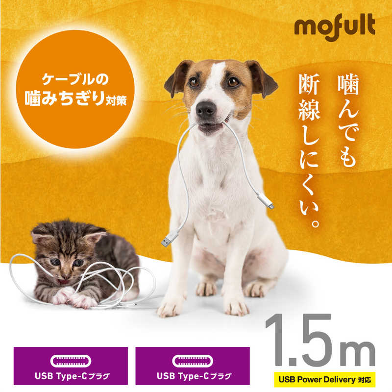 エレコム ELECOM ペットが噛んでも断線しにくいケーブル mofult 1.5m Type-C to Type-C ステンレス製 ホワイト PET-CCMT15WH