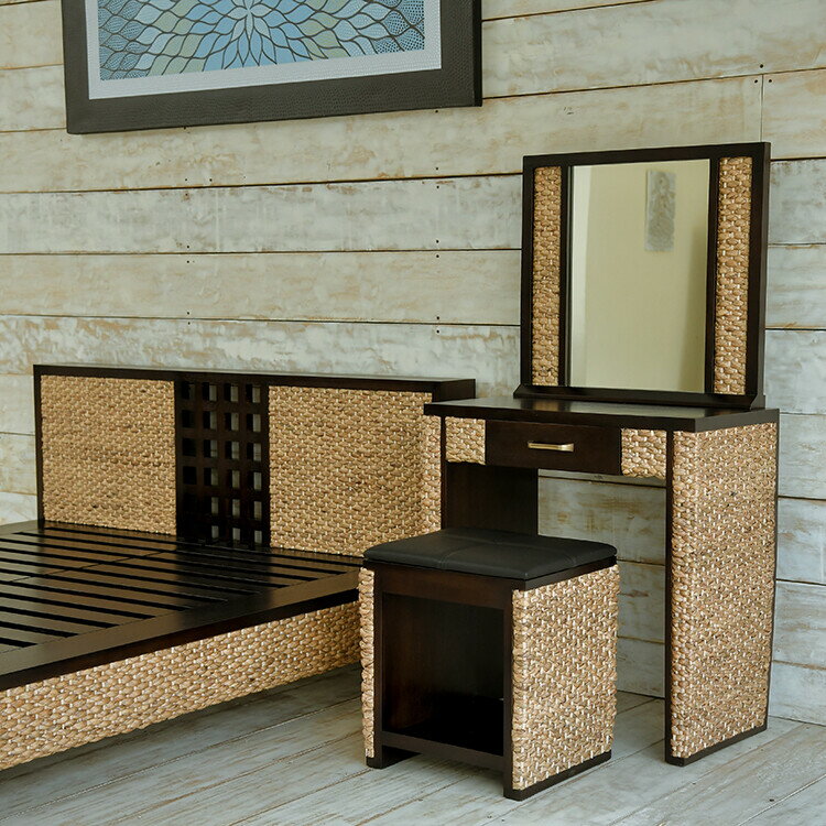 ウォーターヒヤシンス ドレッサー 3点セット 鏡 スツール デスク アジアン家具