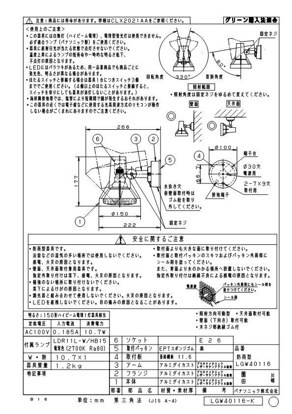 (LINEクーポン有)(送料無料) パナソニック LGW40116 LEDスポットライト150形電球色 Panasonic