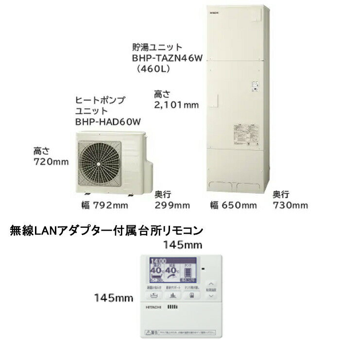 (LINEクーポン有)日立 BHP-ZN46WU 給湯器 エコキュート 給湯専用 角型タンク(高効率)一般地仕様 リモコン+脚カバー付 460L(4〜6人用) HITACHI (代引不可)