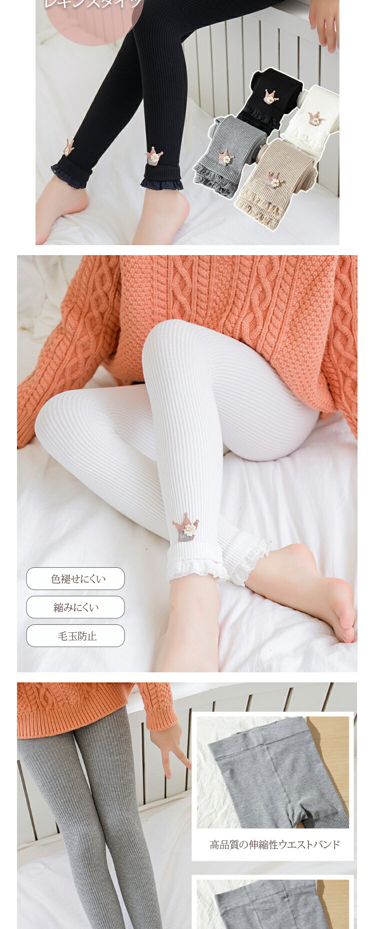 キッズタイツ タイツ キッズレギンス レギンス キッズ 9分丈 子供 女の子 ベビー コットン 王冠 リブ おしゃれ 人気 かわいい 通気性 伸縮性 快適