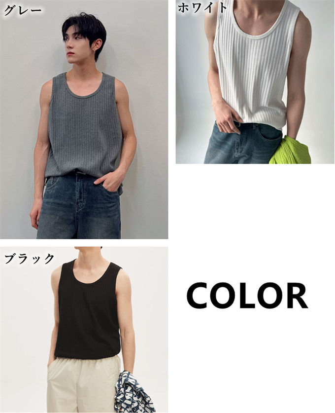 TANK TOP トップス クルーネック ノースリーブ リブ編み オーバーサイズ トレーニング 筋トレ カジュアル 春夏 ビッグシルエット タンクトップ メンズ tシャツ インナー レイヤード 無地 大きいサイズ 韓国ファッション ストレッチ トレーニングウェア