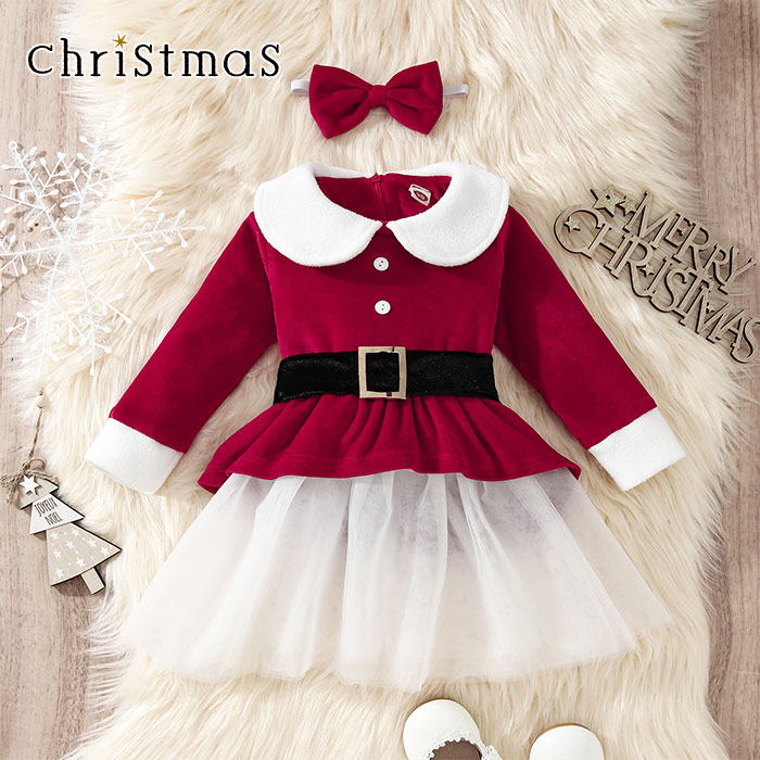 プリンセスドレス 子供 サンタドレス ヘアバンド付き 2点セット サンタ衣装 クリスマス コスプレ サンタ クリスマス 衣装 子供 女の子 長袖 ワンピース クリスマス コスチューム キッズ サンタコス サンタ なりきり 仮装 演出服 子ども パーティードレス 80〜130cm