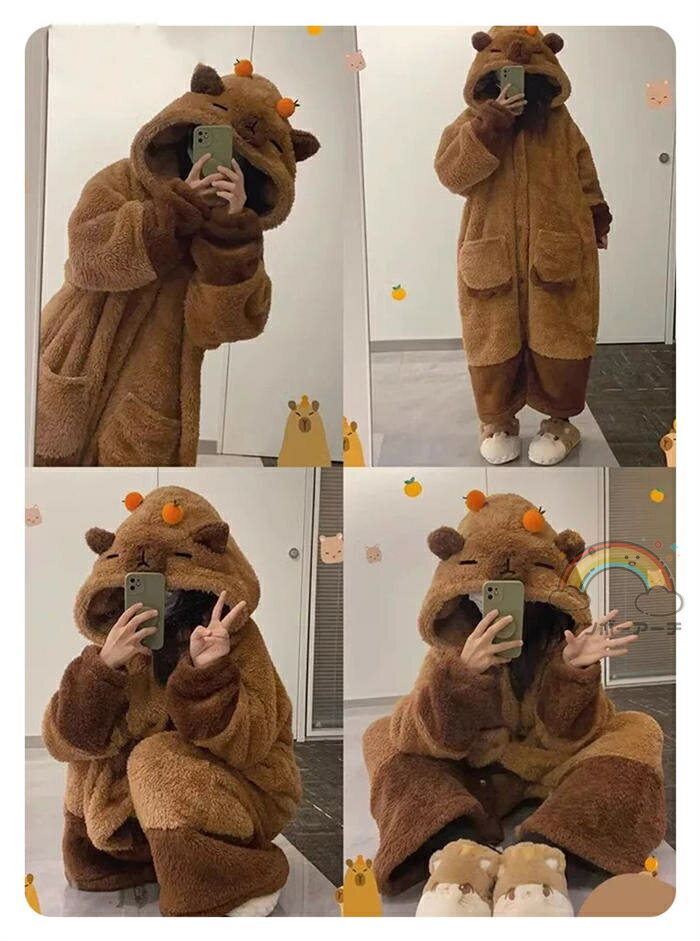 パジャマ レディース メンズ カピバラ パンダ パンダ アライグマ ナイトガウン 着る毛布 着ぐるみ 部屋着 寝間着 ルームウェア ペアパジャマ 長袖 大きいサイズ ユニセックス 男女兼用 ふわふわ モコモコ あったか 暖かい かわいい おもろい おうち時間 プレゼント