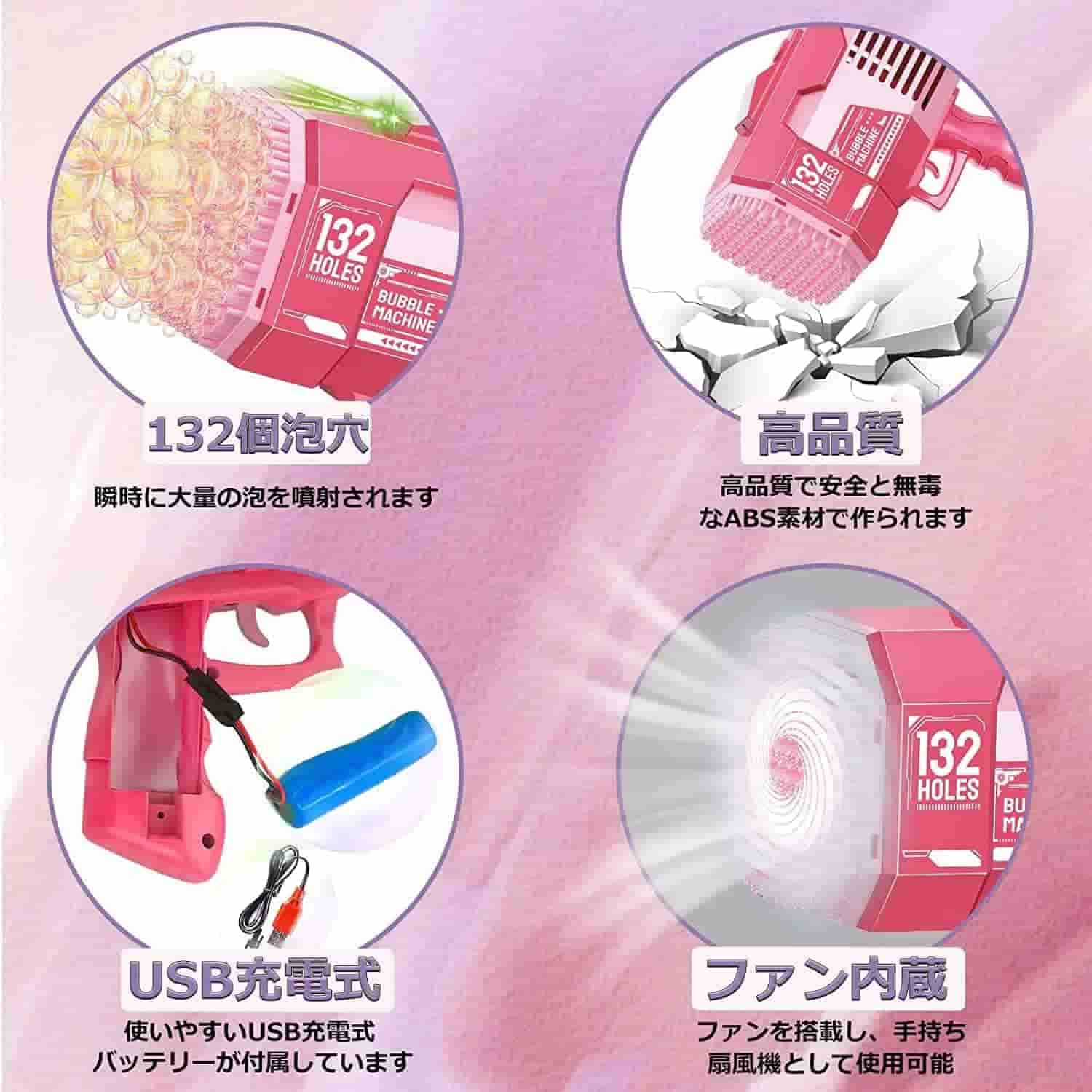 132穴 バブルガン シャボン玉 電動 バズーカ砲形 バブルマシン シャボン玉製造機 ライト付き 雰囲気作り 外遊び プール お風呂おもちゃ 多機能子供 おもちゃ 誕生日 プレゼント