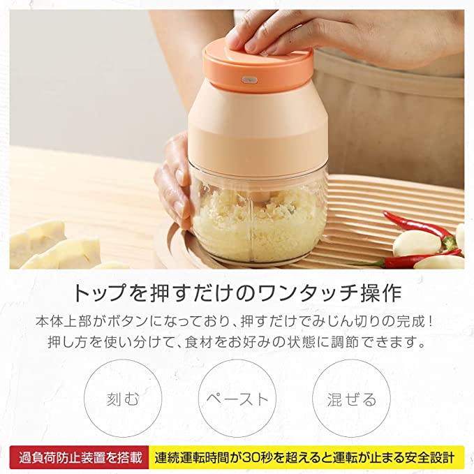 みじん切り器 チョッパー 肉 野菜 カッター フードプロセッサー 電動 USB充電式 コードレス コンパクトミニ 収納便利 水洗える ワンボタン 操作簡単