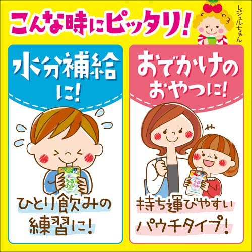 お店TOP>ベビー&キッズ>ベビーフード・離乳食>離乳食 完了期(12ヶ月頃)>離乳食 完了期 おやつ(12ヶ月頃から)>果実とミネラルのうるジュレ GREEN (100g*6個入*4セット)【果実とミネラルのうるジュレ GREENの商品詳細】●ジュレでやさしく水分補給!●着色料・香料・保存料不使用。●素材のおいしさを活かしたやさしい味わいです。●お子さまにも食べやすいジュレ状で、おやつ感覚で手軽に水分補給いただけます。【品名・名称】14%混合果汁入り飲料(ゼリー飲料)【果実とミネラルのうるジュレ GREENの原材料】果実(白ぶどう(アルゼンチン)、洋なし、すだち)、果糖ぶどう糖液糖、食塩、乳酸菌(殺菌)/ゲル化剤(増粘多糖類)、乳酸Ca、クエン酸【栄養成分】1袋(100g)当たりエネルギー:30kcal、たんぱく質:0.1g、脂質:0g、炭水化物:7.5g、食塩相当量:0.10gシールド乳酸菌(R):100億個配合【保存方法】高温・直射日光を避け保存してください。【注意事項】・開封後はお子さまにすぐにあげてください。・誤飲防止のためキャップは大人の方が開封してください。・容器のフチでケガをしないようにご注意下さい。・高温・凍結により食感が変わったり、水分が分離することがあります。・時間の経過により、液色が濃くなることがありますが品質には問題ありません。・就寝前に飲ませることやだらだら飲みは虫歯の原因になることがあります。・容器が落下・衝撃等により破損しますと衛生性が損なわれます。取り扱いには十分注意してください。・容器でケガをする恐れがありますので、飲み終わった容器はすぐに処分してください。【原産国】日本【ブランド】やさいジュレ【発売元、製造元、輸入元又は販売元】森永乳業※説明文は単品の内容です。商品に関するお電話でのお問合せは、下記までお願いいたします。受付時間 平日9:00-17:00(年末年始を除く)商品全般:0120-369-744育児・栄養食品:0120-303-633リニューアルに伴い、パッケージ・内容等予告なく変更する場合がございます。予めご了承ください。・単品JAN:4902720134675森永乳業※お問合せ番号は商品詳細参照広告文責:楽天グループ株式会社電話:050-5577-5043[ベビーフード 1歳/ブランド:やさいジュレ/]