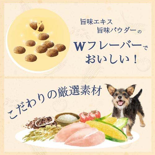 お店TOP>ペット用品>犬用食品(フード・おやつ)>プレミアム・ドッグフード>プレミアム・ドッグフード全部>ファーストチョイス ChoiceS 高齢犬7歳以上 (700g×8袋入)【ファーストチョイス ChoiceS 高齢犬7歳以上の商品詳細】●高齢犬の健康を考えた低脂肪(※1)な食事です●主原料は栄養バランスに優れ、おいしくてヘルシーな厳選された鶏肉を使用●食物繊維配合でお腹が緩くなることを防ぐ(※2)●健康を保ち本来の免疫力を維持します(※3)●健康な関節の維持にグルコサミン、コンドロイチンを配合※1 「ChoiceS成犬1歳以上に」を基準として20%カット※2食物繊維(玄米、ビートパルプ、オートブラン、チコリ)を配合し軟便を防ぎます※3リコピン、ビタミンC、E配合【使用方法】・愛犬の体重に合った適切な量を1日2〜3回に分けて与えてください。・食事の量は環境や運動量によって異なります。・給与量の表を目安に、愛犬の体調に応じてフードの量を調整してください。・新鮮な水をいつも飲めるようにしておいてください。・他のフードからファーストチョイスに切り替えるとき、これまでのフードに少しずつ混ぜ、ファーストチョイスの比率を徐々に増やしながら、1週間程度かけて完全に切り替えてください。【ファーストチョイス ChoiceS 高齢犬7歳以上の原材料】コーン、鶏肉※、玄米、たん白加水分解物、オートブラン、ビートパルプ、鶏脂、サーモンオイル(DHA源)、大豆レシチン、亜麻仁(オメガ3・6脂肪酸源)、酵母、トマト(リコピン源)、酵母エキス(マンナンオリゴ糖)、チコリ(イヌリン源)、グルコサミン、ユッカ抽出エキス、L-カルニチン、ビタミン類(A、B1、B2、B6、B12、C、D3、E、ナイアシン、パントテン酸、ビオチン、葉酸)、ミネラル類(亜鉛、カリウム、カルシウム、クロライド、セレン、鉄、銅、ナトリウム、マンガン、ヨウ素)、酸化防止剤(ビタミンE) ※コンドロイチンは鶏肉由来です【栄養成分】タンパク質:21%以上、脂質:7%以上、粗繊維:5%以下、灰分:8%以下、水分:10%以下、328kcal/100g【保存方法】直射日光や高温多湿を避けて保存してください。開封後はお早めにご使用ください。【注意事項】・本品は愛犬用です。人用のものと混同しないようにする。・生後0〜2カ月の幼犬には与えないようにする。・幼小児が愛犬に与えるときは、安全のため大人が監視する。・幼小児が誤食しないよう、幼小児の手が触れない場所に保存する。・開封後は虫やほこり等が入らないよう、封をしっかり閉めるようにする。・愛犬の体質に合わない場合は、使用を中止するようにする。・愛犬の体調に異常が生じたときは獣医師に相談する。・本品は天然の原材料を使用しています。・原材料の収穫時期等により製品の色・香り・質感・大きさ等多少異なる場合がありますが、品質に問題はありません。・粒サイズは原寸大写真の大きさが基準ですが、若干異なる場合があります。【原産国】カナダ【ブランド】ファーストチョイス(1ST CHOICE)【発売元、製造元、輸入元又は販売元】アース・ペットこちらの商品は、ペット用の商品です。リニューアルに伴い、パッケージ・内容等予告なく変更する場合がございます。予めご了承ください。アース・ペット105-0004 東京都港区新橋4丁目11番1号 A-PLACE新橋0120-911-330 広告文責:楽天グループ株式会社電話:050-5577-5043[犬用品/ブランド:ファーストチョイス(1ST CHOICE)/]