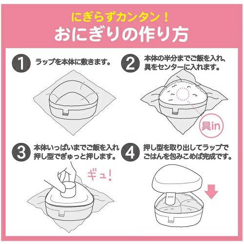 にぎらずに作れる♪そのまま携帯OK! 具だくさんの爆弾おにぎりが作れちゃう。 (コンビニおにぎりの約2倍の230g!) ラップにご飯をつつんでケースに入れると、三角おにぎりがカンタンにつくれます。 電子レンジにも使える携帯おにぎりケースです。 ●サイズ:109X106XH56mm ●材質:ポリプロピレン(耐熱温度140度) ●フタをはずしてレンジ使用OK! ●食器洗浄機・乾燥機はご使用できません ●日本製です