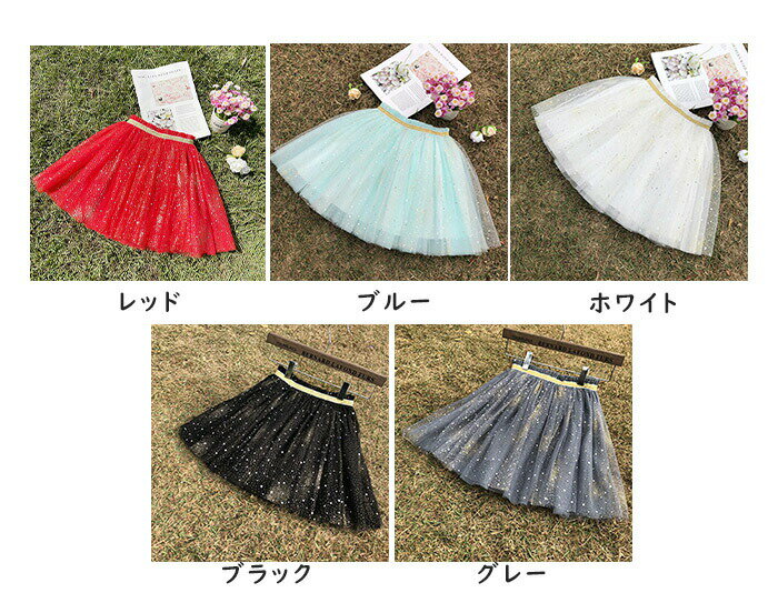 キッズ チュールスカート フレアスカート 子供服 ショート丈 女の子 ミニスカート チュチュスカート ウエストゴム チュチュ キラキラ 女児 かわいい オシャレ レッド ブルー ホワイト ブラック グレー 100cm 110cm 120cm 130cm 140cm 150cm