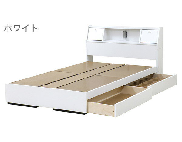 日本製ベッド ダブル ダブルサイズSGマーク付ハードボンネルコイルマットレス コンセント付き 引き出し付き マルチカラー K333(代引不可)【送料無料】