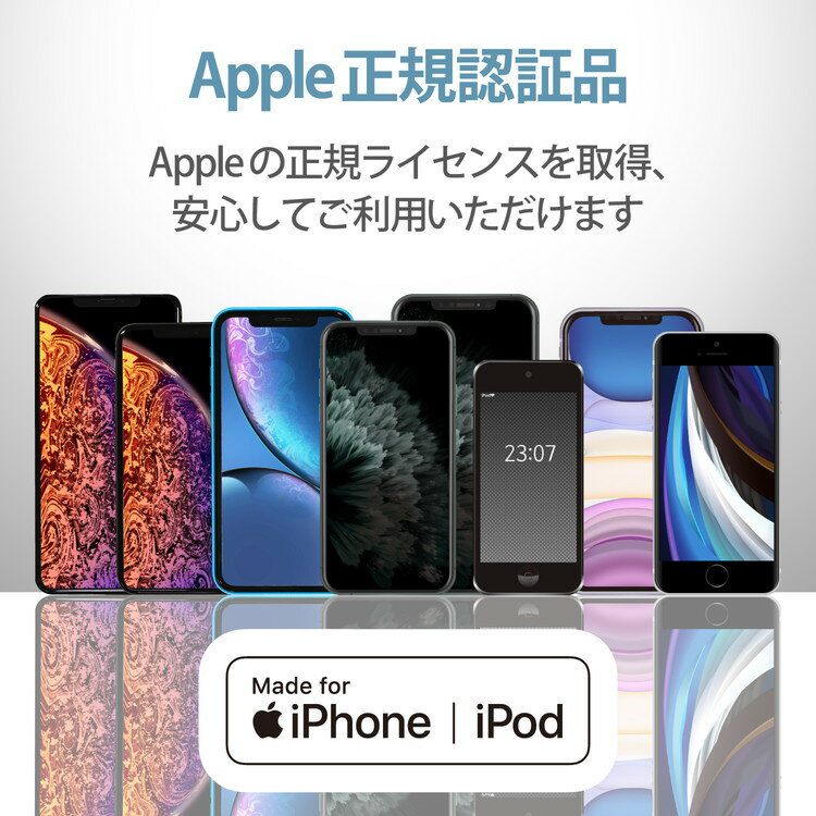 【商品詳細】家庭用コンセントからLightningコネクタ搭載のiPhoneやiPad、iPodを充電できるLightningケーブル一体型のAC充電器です。ケーブルの長さは1mです。■家庭用コンセントからLightningコネクタ搭載のiPhoneやiPodを充電できるLightningケーブル一体型のAC充電器です。 ■携帯に便利なコンパクト設計のかわいいキューブ型デザインを採用しています。 ■Lightningケーブル一体型なので、別途ケーブル等を用意することなく使用可能です。 ■iPhoneに付属のLightningケーブルと同じ長さのケーブル長1mを採用しています。 ■コンパクトサイズでありながら、未使用時は電源プラグを折りたたんで充電器本体に収納できるので持ち運びに便利です。 ■※端末本体や充電器が濡れた状態で充電すると、異常な発熱・焼損の原因となり大変危険ですのでおやめください。■対応機種:Lightningコネクタから5W(5V/1A)までの出力で充電、使用可能な機器 ■コネクタ形状:Lightningコネクタ ■定格入力電圧:AC100-240V 50/60Hz ■定格入力電流:0.2A ■定格出力電力:5W ■定格出力電圧:5V ■定格出力電流:1A ■外形寸法:約 幅30mm×厚み30mm×高さ30mm ※ACプラグ収納時 ■重量:約40g ■ケーブル長:約1m ■カラー:ホワイト ■コンセントプラグ仕様:90度スイング構造/耐トラッキングスリーブ付 ■認証:MFi ■法令:◇PSE 特定電気用品 ■使用可能地域:日本 ■保証期間:1年 ■その他:コンパクトでかわいいキューブ型【代引きについて】こちらの商品は、代引きでの出荷は受け付けておりません。【送料について】北海道、沖縄、離島は送料を頂きます。