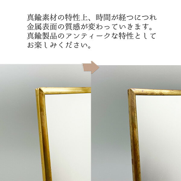 真鍮の枠がどこか懐かしいスタンドミラー LLサイズです。アンティーク仕上げの真鍮のフレームは、シンプルながら素朴で優しい雰囲気を醸し出してくれます。更に、時間の流れとともに、真鍮の表面の質感が変化していく様子もお愉しみ頂けます。※この商品は枠の真鍮にあらかじめアンティーク加工がされていますので、商品により枠にシミ、黒ズミなどがございます。ご了承ください。※背面の金属ワイヤースタンドは任意の位置で角度調節可能です。【商品詳細 】商品名 Odier 真鍮スタンドミラー LLサイズ 約W198×H198×D10mm素材 2mm厚ミラー、真鍮、スチール(裏板・スタンド)【代引きについて】こちらの商品は、代引きでの出荷は受け付けておりません。【送料について】沖縄、離島は送料を頂きます。アコースティック 壁掛け式 円形ミラー直径35cm直径50cmオディエ 真鍮スタンドミラー長方形 15.4×18.7cm正方形 19.8×19.8cmオクタム スタンド式&壁掛け式 八角形ミラー15×15cm20×20cm28×28cm37×37cmプロローグ スタンド式&壁掛け式 八角形ミラー18.7×18.7cm23.2×23.2cm33.8×33.8cm