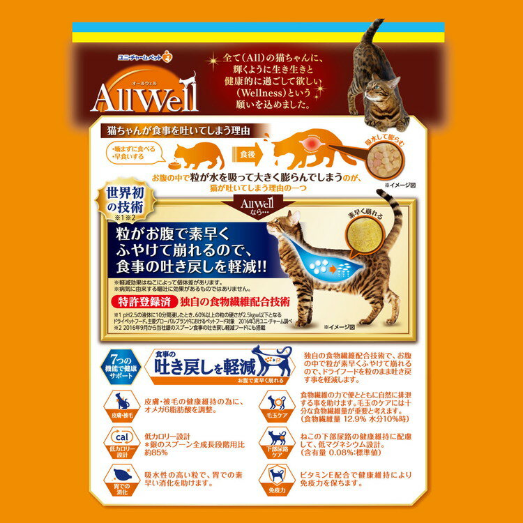【3個セット】 ユニチャーム AllWell 避妊・去勢した猫の体重ケア 筋肉の健康維持用 フィッシュ味挽き小魚とささみフリーズドライパウダー入り 750g (375g×2袋)【ポイント10倍】【送料無料】
