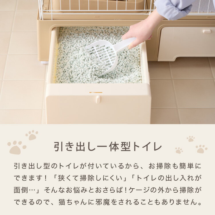 【リコメン堂限定オリジナルカラー 2色】 猫 ケージ キャットケージ 4段 トイレ付き 引き出し キャスター おしゃれ 収納 トイレ付 脱走防止 お手入れ簡単 ペットケージ キャットハウス 室内 屋内【送料無料】