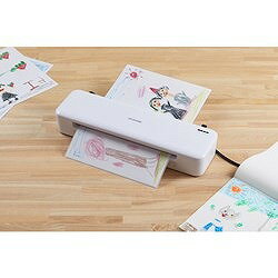 特長●ウォームアップ時間35秒と待ち時間が短いので思い立ったらすぐにラミネートできます。●仕上がりをキープするワイヤートレー付きで変形を防ぎます。●詰まりかけたフィルムを簡単に取り出すことができます。仕様●最大ラミネート厚さ(mm):0.6●消費電力(W):1320●ラミネート速度(mm/秒)(50/60Hz):6.8/8.3●幅(mm):490●奥行(mm):154●高さ(mm):80●色:ホワイト●電源コード長さ(m):約1.2●ウォームアップ時間(秒):約35●ラミネートサイズ:A3まで材質/仕上●ABS樹脂●スチールセット内容/付属品●ワイヤートレー×2個、キャリアシート×1枚、クリーニングペーパー×1枚原産国:中国【代引きについて】こちらの商品は、代引きでの出荷は受け付けておりません。【送料について】北海道、沖縄、離島は送料を頂きます。