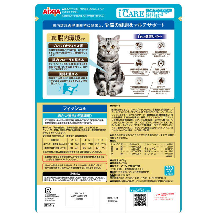 【6個セット】 アイシア i CARE キャットドライ 成猫用 フィッシュ味 400g【送料無料】