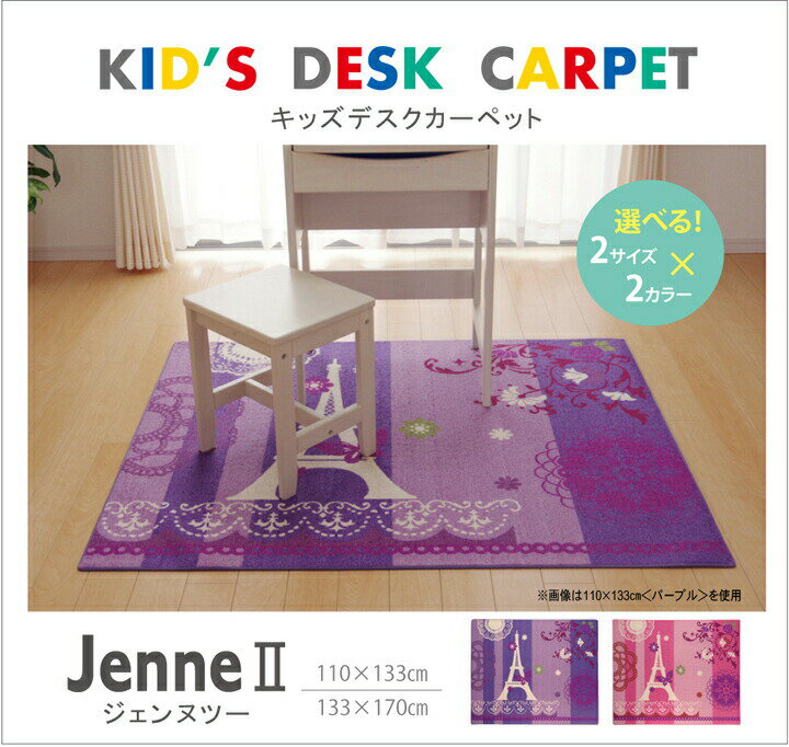 商品サイズ約133×170cm組成素材:表地=ポリエステル100% 裏地=ポリエステル100%【不織布】洗濯表示1洗濯=30℃以下の水温で弱い手洗いがよい。(洗濯機の使用はできません。) 干し方=日陰のつり干しがよい。原産国:中国製【商品特徴】学習机用のデスクカーペットです。かわいらしいエッフェル柄が特徴です。表地はループタイプになっており、毛足が短く掃除がしやすい仕様になっています。裏地には不織布を使用していますので、フローリングが傷つきにくいです。お子様の学習机の下や、ベッドサイドなどにお勧めの商品です。【代引きについて】こちらの商品は、代引きでの出荷は受け付けておりません。【送料について】北海道、沖縄、離島は送料を頂きます。デスクカーペット 女の子 エッフェル柄 『ジェンヌ ツー』 約133×170cm ↓デスクカーペット 「ジェンヌツー」 はこちら↓ ※画像は110×133cmサイズです。 PK(ピンク) ※画像は110×133cmサイズです。 PU(パープル) デスクカーペット 「ジェンヌツー」 サイズ約133×170cmカラーピンク/パープル組成素材:表地=ポリエステル100% 裏地=ポリエステル100%【不織布】原産国中国製■学習机用のデスクカーペットです。かわいらしいエッフェル柄が特徴です。■表地はループタイプになっており、毛足が短く掃除がしやすい仕様になっています。■裏地には不織布を使用していますので、フローリングが傷つきにくいです。■お子様の学習机の下や、ベッドサイドなどにお勧めの商品です。※写真は表記サイズと異なる場合がございます。◆洗濯表示◆ 洗濯=30℃以下の水温で弱い手洗いがよい。(洗濯機の使用はできません。) 干し方=日陰のつり干しがよい。デスクカーペット エッフェル柄 ジェンヌ ツーピンク/110×133cmパープル/110×133cmピンク/133×170cmパープル/133×170cm
