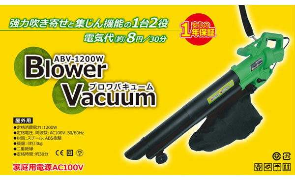 ブロアー バキューム ABV-1200W ブロワーバキューム 落ち葉集め アルミス コード式(代引不可)【送料無料】