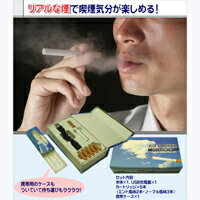セット明細本体×1、USB充電器×1、カートリッジ×5本(ミント風味2本・ノーマル風味3本)、携帯ケース×1商品についてリアルな煙で喫煙気分が楽しめる!気分にあわせて風味もチョイス♪・カートリッジを差し込んで吸うと先端が赤く点灯し、本物のタバコを吸っているときと同様に煙が出ます。(カートリッジに含まれる水分を霧に変化させます。)・USB充電式です。(本体のバッテリー部をUSB充電器に回しながら差し込みます。)・別売の専用カートリッジ10本セットは、ノーマル風味・ミント風味・バニラ風味の3種類があります。送料について沖縄・その他離島は別途送料がかかります(受注後に別途ご連絡)。