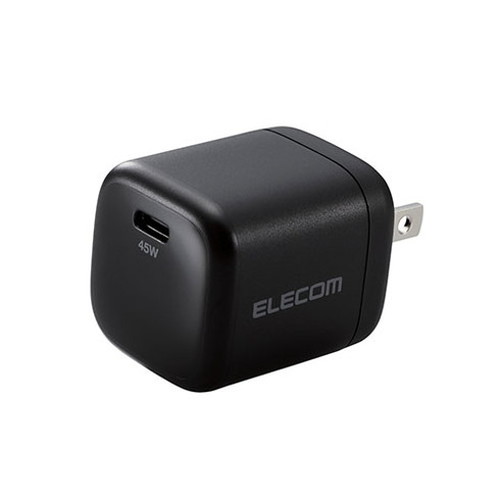 【商品説明】■USBPowerDeliveryに対応したUSBType-C(TM)(USB-C(TM))ポートを搭載し、対応するノートパソコンやスマートフォン、タブレットなどを超高速充電できます。■GaN(窒化ガリウム)を採用した小型で軽量、かつ高出力なUSBAC充電器です。■GaN(窒化ガリウム)とは従来のシリコンと比べると発熱を抑える事が出来る新材料で、製品の小型化及び軽量化が可能となりました。■手のひらにすっぽり隠れるほど小さく(約42mm×35mm×35mm)、軽量(約69g)なので外出や出張などの際の持ち運びに便利です。■USBPowerDelivery(パワーデリバリー)とは、アダプターと接続機器間で情報をやり取りすることで、その機器間における最適な電力を選択し、高速充電を実現するUSB規格です。■※本製品の最大出力は45Wです。■端末に応じて出力が5V/3A、9V/3A、15V/3A、20V/2.25Aと可変し、iPhoneなどのスマートフォンから、iPadAirなどタブレット端末、Windouwsなどのノートパソコンまで幅広く高速充電できます。■※USBPowerDelivery45W充電に対応した機種に限ります。■PPSに対応する機器の場合、端末に最適な出力で効率的に電源を供給することができます。■※PPS(ProgrammablePowerSupply)はUSB-PD3.0のオプション規格です。■本製品はUSB-IFのテストと同等のテストを弊社独自で実施し、高い安全性が保たれています。USBPowerDelivery対応製品にご使用いただけます。■スマートフォン等に付属もしくは対応する充電用USBケーブルを使用して充電可能です。■※本製品に充電用ケーブルは付属していません。■未使用時は電源プラグを折りたたんで充電器本体に収納可能です。スッキリとコンパクトに収納できるので、持ち運びにも便利です。■耐トラッキング性の要求事項(PSE:電気用品安全法)を満たしたコンセントプラグを採用しています。■※本製品にケーブルは同梱しておりません。別途MFi認証品のUSBType-C(TM)(USB-C(TM))toLightningケーブルやエレコムのUSB規格認証USBType-C(TM)(USB-C(TM))toUSBType-C(TM)(USB-C(TM))ケーブル等をご用意ください。■※端末本体や充電器が濡れた状態で充電すると、異常な発熱・焼損の原因となり大変危険ですのでおやめください。■※USBType-C(TM)andUSB-CaretrademarksofUSBImplementersForum■自社環境認定基準を1つ以上満たし、『THINKECOLOGY』マークを表示した製品です。■廃棄物削減に取り組み、製品に同梱する取扱説明書等をペーパーレス化した製品です。■環境保全に取り組み、製品の包装容器におけるプラスチック重量を、社内基準製品より20%以上削減した製品です。【商品詳細】■対応機種:USBType-C(TM)(USB-C(TM))ポートからUSBPowerDelivery3.0(45W)の規格内で充電可能な端末。USBPowerDelivery3.0のオプション規格内であるPPS(ProgrammablePowerSupply)の充電規格内で充電可能な端末。■定格入力電圧:AC100-240V50/60Hz■定格入力電流:1.8A■定格出力電力:最大出力時:45WPPS最大出力時:45W■定格出力電圧:5V/9V/15V/20VPPS出力:3.3V-16V/3.3V-21V■定格出力電流:5V時3A/9V時3A/15V時3A/20V時2.25APPS出力:3.3V-16V時3.0A/3.3V-21V時2.25A■外形寸法:幅約42mm×厚み約35mm×高さ約35mm■重量:約69g■カラー:ブラック■使用可能地域:日本■保証期間:1年■コネクタ形状:USBType-C(TM)(USB-C(TM))(メス)×1■コンセントプラグ仕様:90度スイング構造■使用温度範囲:0℃〜25℃■法令:◇PSE特定電気用品■その他:※USBType-CandUSB-CaretrademarksofUSBImplementersForum【特長】スマートフォン、タブレット、携帯電話、スマートフォン、充電器、AC充電器、Type-Cポート(AC充電器)【代引きについて】こちらの商品は、代引きでの出荷は受け付けておりません。【送料について】北海道、沖縄、離島は送料を頂きます。