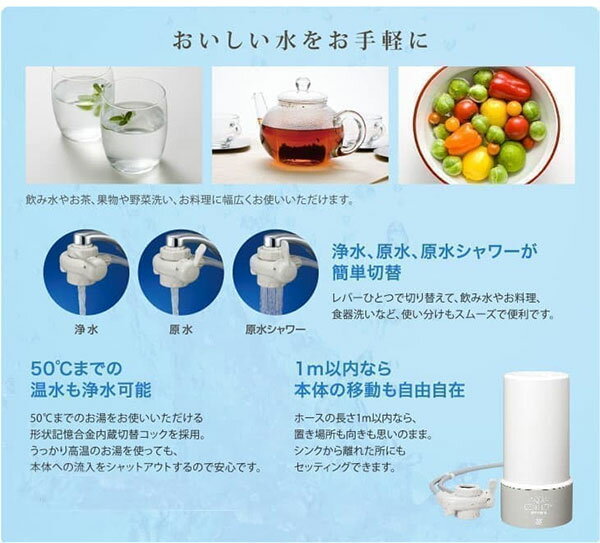 【商品説明】■材料の種類/本体:ABS樹脂、カートリッジ:ABS樹脂、ホース:ポリエチレン、切替コック:ABS樹脂■ろ材の種類/高純度粒状活性炭・イオン交換繊維状活性炭・中空糸膜、ろ材以外の封入材料:コーラルサンド■ろ過流量/3.0L/分■ろ材の交換時期/1年(1日20L使用の場合)■サイズ(約)/直径110X高さ220mm■重量(約)/1.1kg(満水時2.0kg)■生産国/日本【代引きについて】こちらの商品は、代引きでの出荷は受け付けておりません。【配送について】北海道、沖縄、離島は配送できません。予めご了承ください。アクアセンチュリースマート本体 MFH-S75交換カートリッジ MFH-70/MFH-S75/VF-A1対応アクアセンチュリー2ホワイト本体 MFH-113交換カートリッジ MFH-112N/MFH-113対応スーパーアクアセンチュリー本体 MFH-222交換カートリッジ MFH-221/MFH-222対応