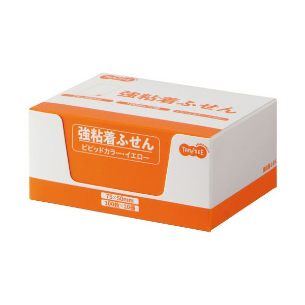 TANOSEE 強粘着ふせん75×50mm ビビッドカラー・イエロー 1セット(30冊:10冊×3パック)