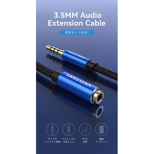 VENTION コットン編み TRRS 3.5mm Male to 3.5mm Female オーディオ延長ケーブル アルミニウム合金 3m ブルー BH-4674 オーディオ関連(代引不可)