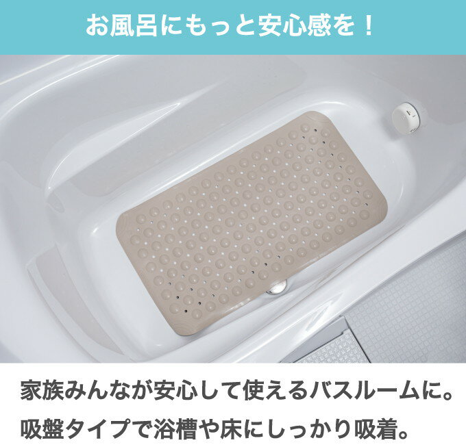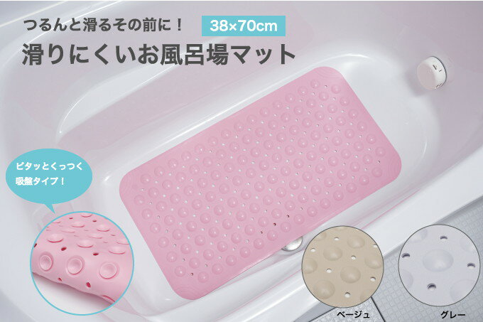 【商品詳細】入浴時の転倒対策に便利な滑り止めマット。浴室の床でも浴槽内でも使用可能です。やわらかく曲がるので持ち運びも便利です。裏面には吸盤がありピタッと吸着して動かないので安心です。材質:TPE商品サイズ(約):38×70cm商品重量(約):700g生産国:中国【代引きについて】こちらの商品は、代引きでの出荷は受け付けておりません。【送料について】北海道、沖縄、離島は送料を頂きます。LINKピンクグレーベージュ