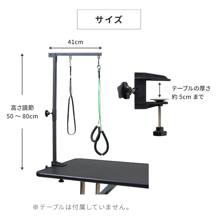 ペット トリミングアーム セット ブラック 幅41×高さ85cm 折りたたみ 手袋付き シンプル 固定式アーム トリミングテーブルアーム 爪切り シャンプー ブロー お手入れ おうちのテーブルで使える 業務用 グルーミング ペット 犬 猫 【送料無料】